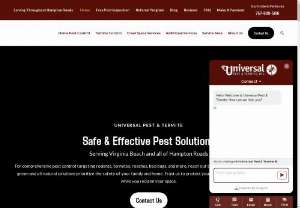 Book Universal Pest for residential and commercial pest control. A trusted pest, termite, rodent, roach and ant control company in Virginia Beach also provides treatment service in Chesapeake, Norfolk, Portsmouth, Newport News, Williamsburg and Hampton Roads VA.