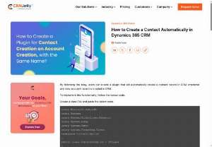 Learn to create a contact creation plugin triggered by account creation, using the same name in Dynamics 365. Visit crmjetty.com for more information.