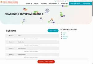 Online coaching classes for Reasoning Olympiad exams (SOF, CREST, Silverzone, Unified Council, Humming Bird, EduHeal, ITO, and ISTSE) are provided for Class 8 students.