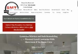 Professional kitchen and bathroom remodeling services, featuring a cabinet showroom in Lynnwood, Washington.